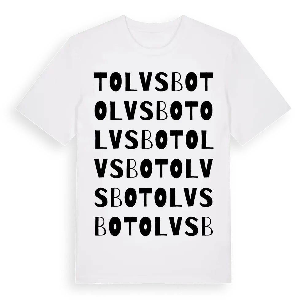 Tolvsbo ordlek t-shirt är inspirerad av Tolvsbo i Hallands län, Sverige. Tröjan är designad för dig som har en speciell koppling till platsen – oavsett om du bor här, har rötterna här eller bara älskar Tolvsbo.