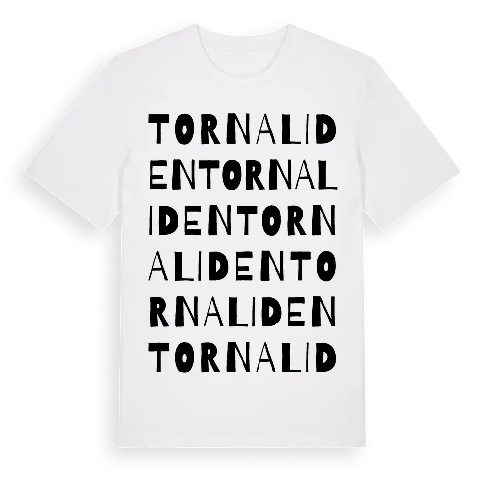 Tornaliden ordlek t-shirt är inspirerad av Tornaliden i Hallands län, Sverige. Tröjan är designad för dig som har en speciell koppling till platsen – oavsett om du bor här, har rötterna här eller bara älskar Tornaliden.
