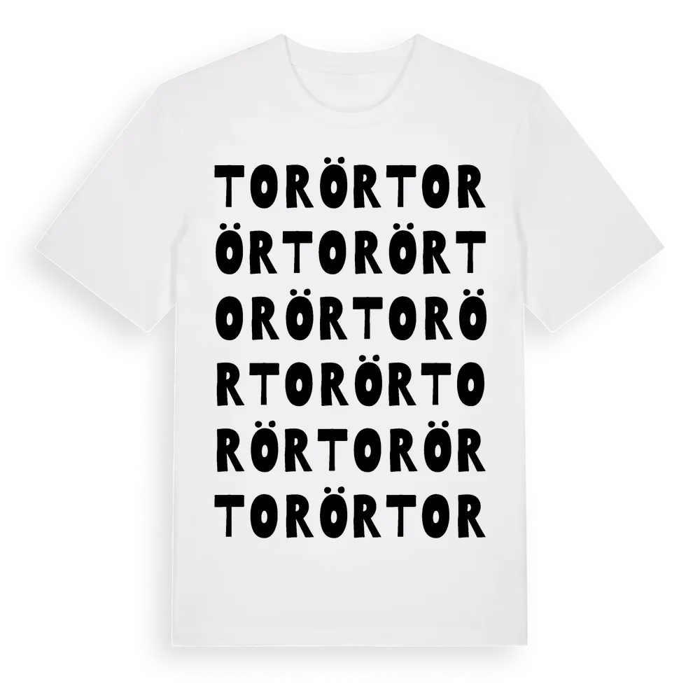 Torör ordlek t-shirt är inspirerad av Torör i Hallands län, Sverige. Tröjan är designad för dig som har en speciell koppling till platsen – oavsett om du bor här, har rötterna här eller bara älskar Torör.