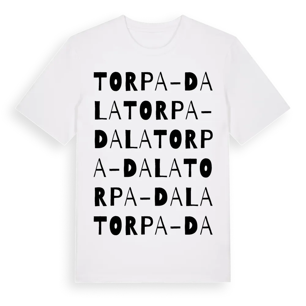 En ordlek byggd på Torpa-Dalas namn. Subtilt och klurig – ett motiv som bara de som verkligen känner platsen fullt ut förstår. Premium bomull, unisex – från byn Torpa-Dala i Hallands län.