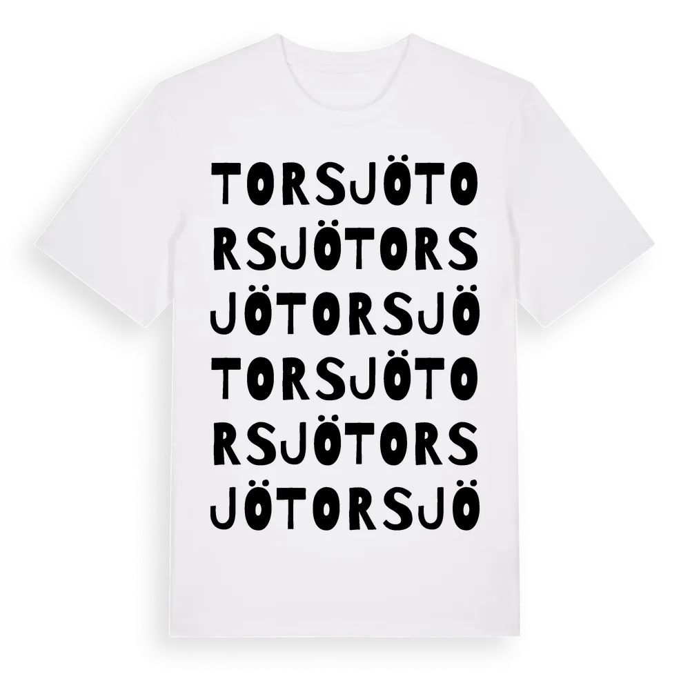 Torsjö ordlek t-shirt är inspirerad av Torsjö i Hallands län, Sverige. Tröjan är designad för dig som har en speciell koppling till platsen – oavsett om du bor här, har rötterna här eller bara älskar Torsjö.