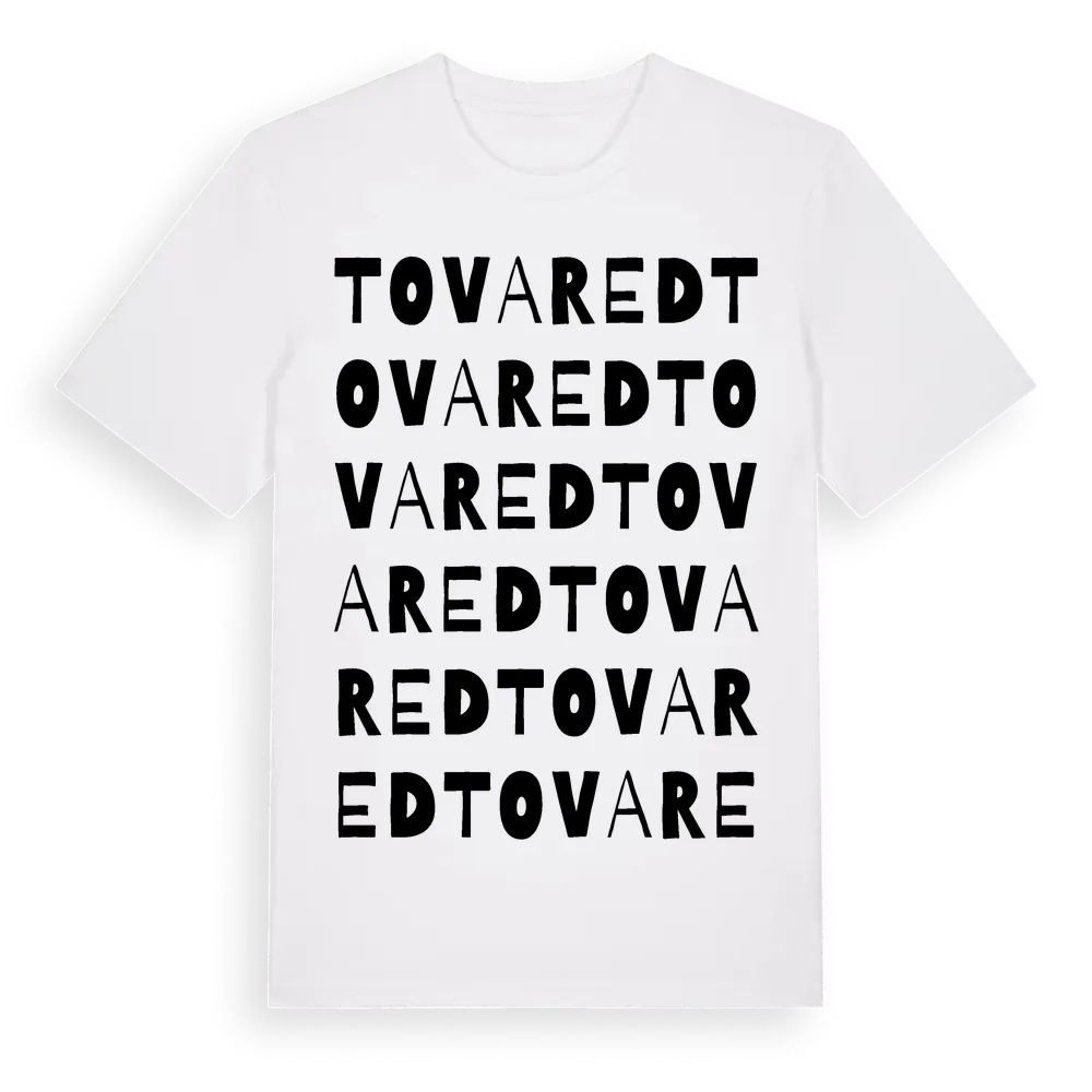 Tovared ordlek t-shirt är inspirerad av Tovared i Hallands län, Sverige. Tröjan är designad för dig som har en speciell koppling till platsen – oavsett om du bor här, har rötterna här eller bara älskar Tovared.