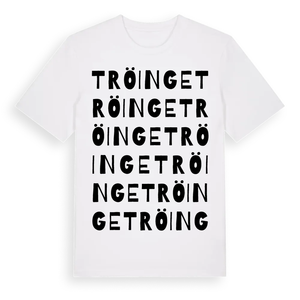 En ordlek byggd på Tröinges namn. Subtilt och klurig – ett motiv som bara de som verkligen känner platsen fullt ut förstår. Premium bomull, unisex – från byn Tröinge i Hallands län.