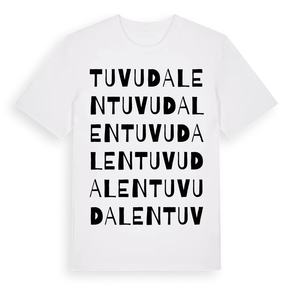 Tuvudalen ordlek t-shirt är inspirerad av Tuvudalen i Hallands län, Sverige. Tröjan är designad för dig som har en speciell koppling till platsen – oavsett om du bor här, har rötterna här eller bara älskar Tuvudalen.
