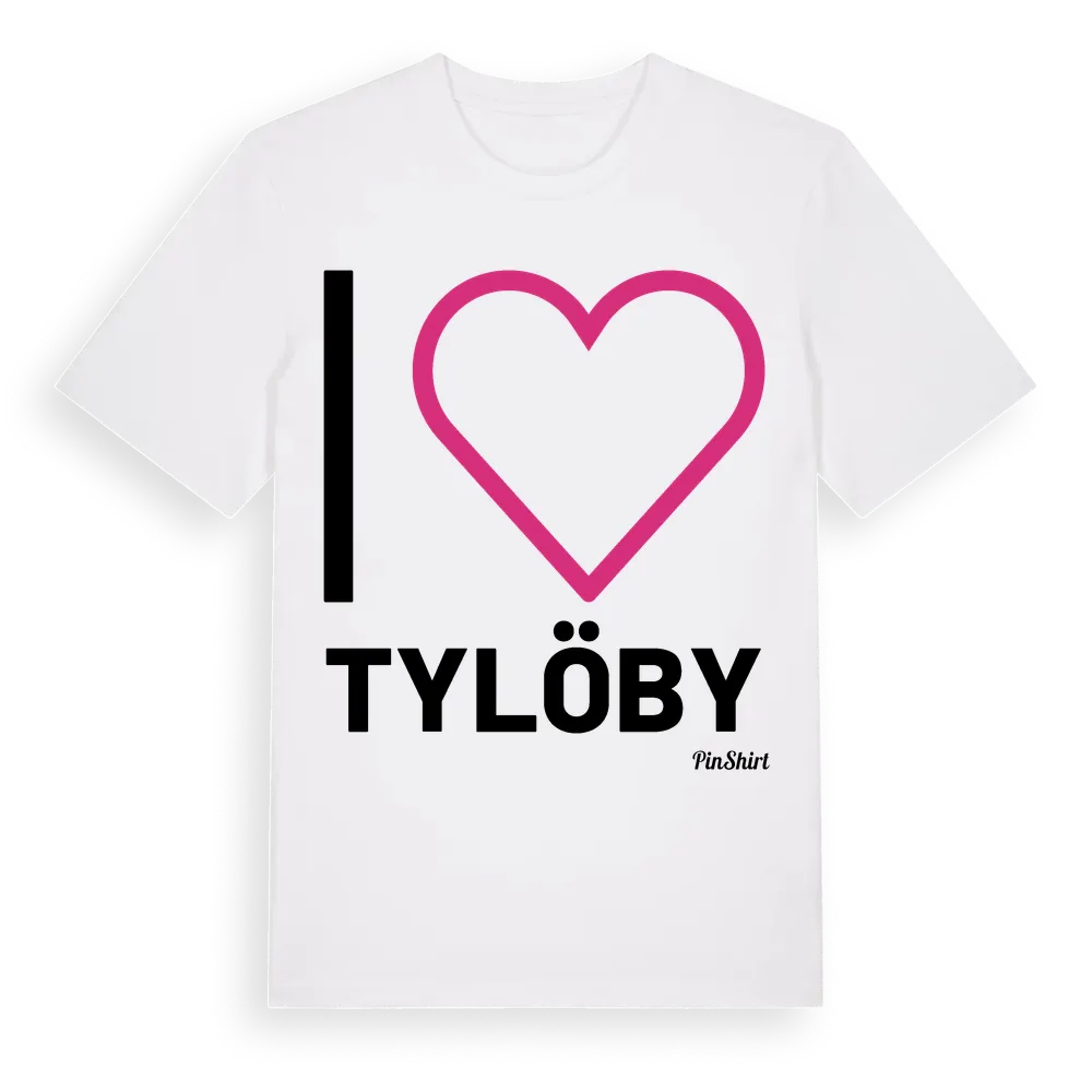Det klassiska "I ❤ Tylöby"-motivet i stort format som täcker hela bröstet. För dig som vill visa kärleken till Tylöby på riktigt. Premium bomull, unisex – från stadsdelen Tylöby i Hallands län.