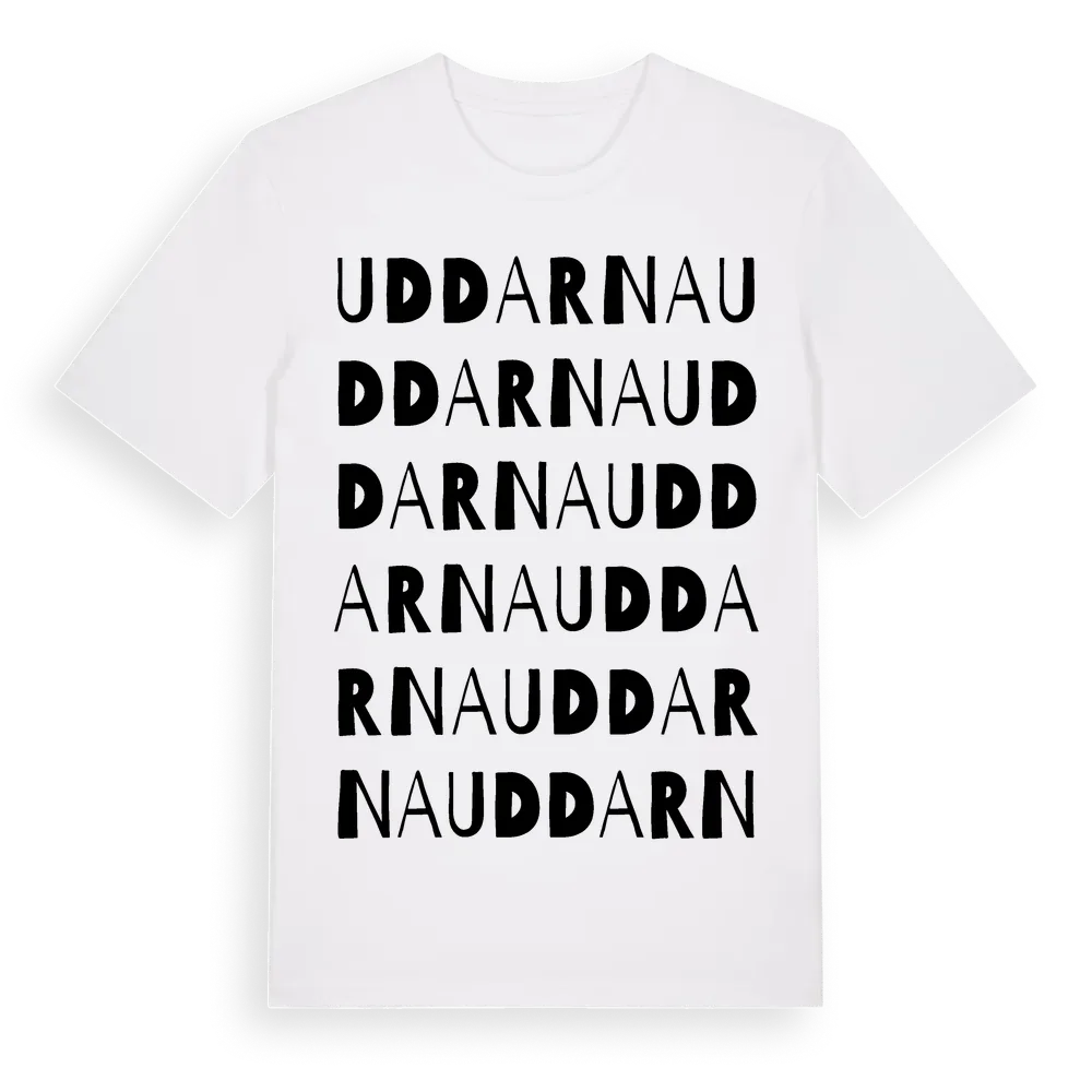 Uddarna ordlek t-shirt är inspirerad av Uddarna i Hallands län, Sverige. Tröjan är designad för dig som har en speciell koppling till platsen – oavsett om du bor här, har rötterna här eller bara älskar Uddarna.