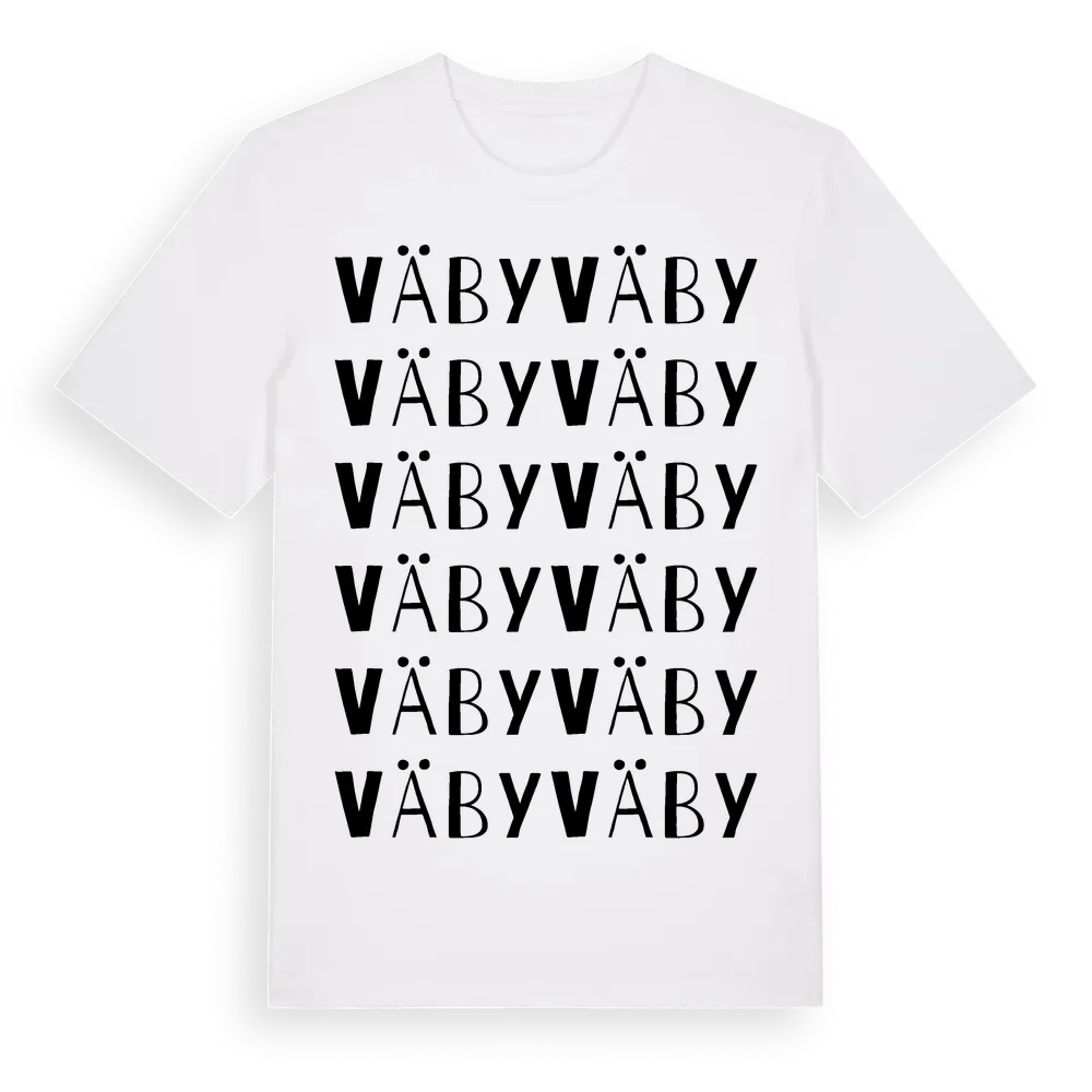 Väby ordlek t-shirt är inspirerad av Väby i Hallands län, Sverige. Tröjan är designad för dig som har en speciell koppling till platsen – oavsett om du bor här, har rötterna här eller bara älskar Väby.