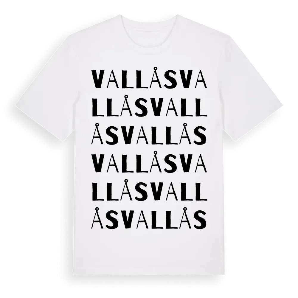 Vallås ordlek t-shirt är inspirerad av stadsdelen Vallås i Hallands län, Sverige. Tröjan är designad för dig som har en speciell koppling till platsen – oavsett om du bor här, har rötterna här eller bara älskar Vallås.