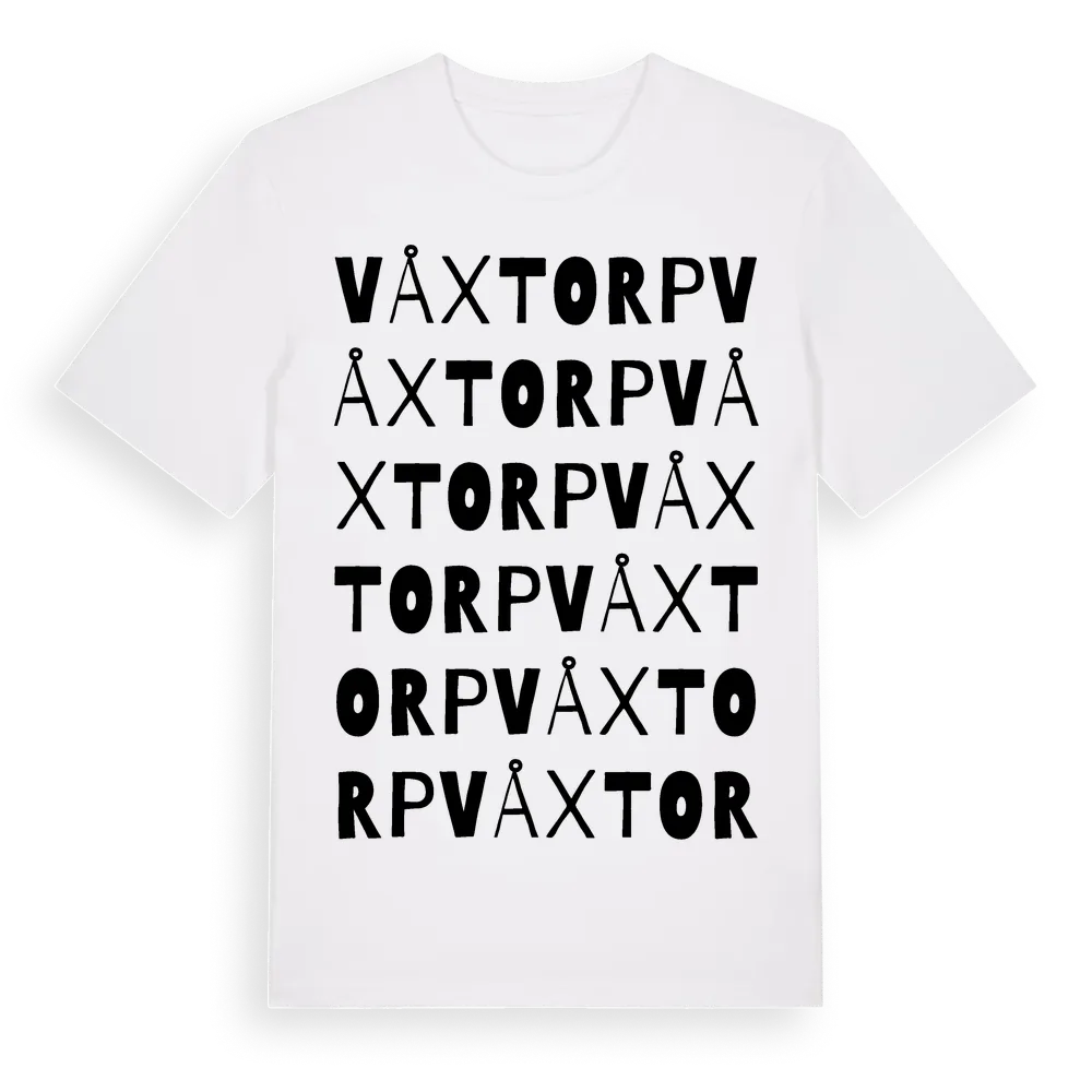 Våxtorp ordlek t-shirt är inspirerad av byn Våxtorp i Hallands län, Sverige. Tröjan är designad för dig som har en speciell koppling till platsen – oavsett om du bor här, har rötterna här eller bara älskar Våxtorp.