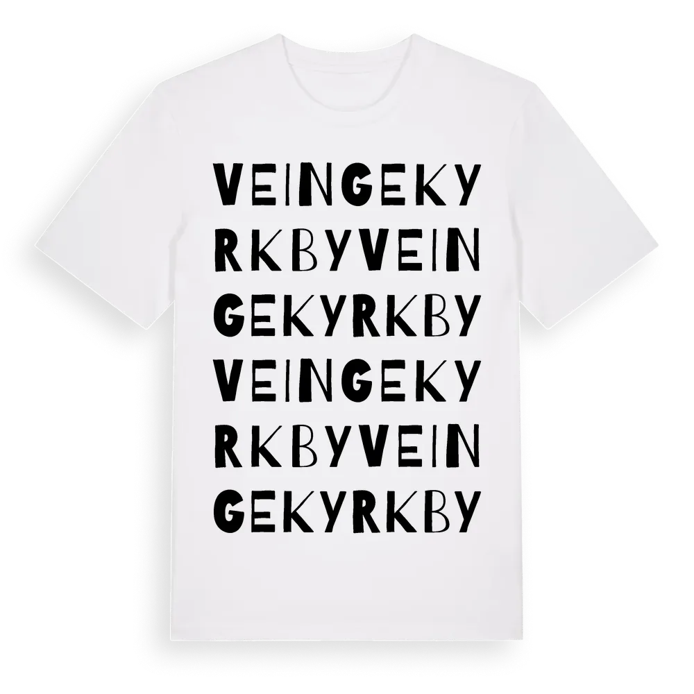 Veinge Kyrkby ordlek t-shirt är inspirerad av byn Veinge Kyrkby i Hallands län, Sverige. Tröjan är designad för dig som har en speciell koppling till platsen – oavsett om du bor här, har rötterna här eller bara älskar Veinge Kyrkby.
