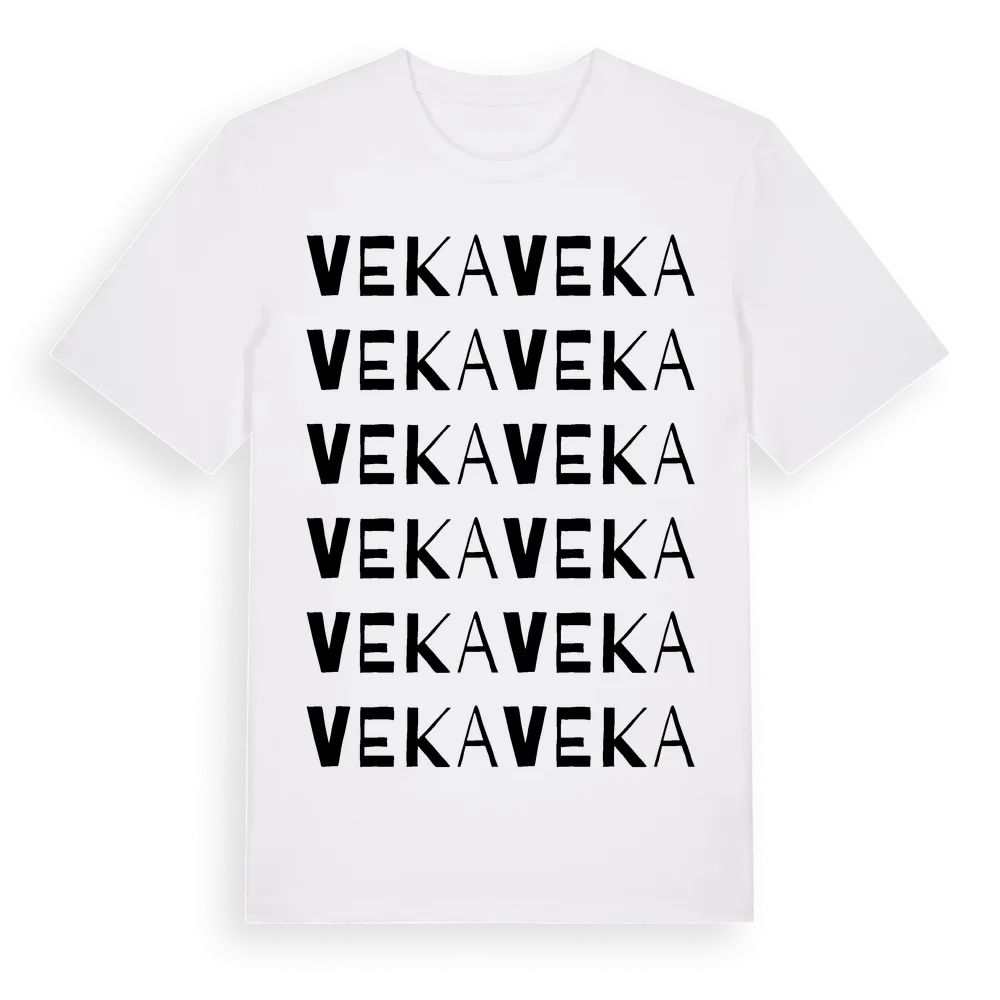 Veka ordlek t-shirt är inspirerad av byn Veka i Hallands län, Sverige. Tröjan är designad för dig som har en speciell koppling till platsen – oavsett om du bor här, har rötterna här eller bara älskar Veka.