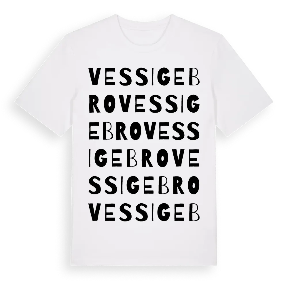 Vessigebro ordlek t-shirt är inspirerad av byn Vessigebro i Hallands län, Sverige. Tröjan är designad för dig som har en speciell koppling till platsen – oavsett om du bor här, har rötterna här eller bara älskar Vessigebro.