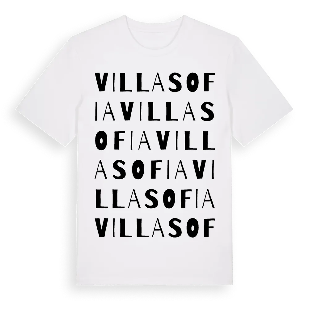 Villa Sofia ordlek t-shirt är inspirerad av Villa Sofia i Hallands län, Sverige. Tröjan är designad för dig som har en speciell koppling till platsen – oavsett om du bor här, har rötterna här eller bara älskar Villa Sofia.