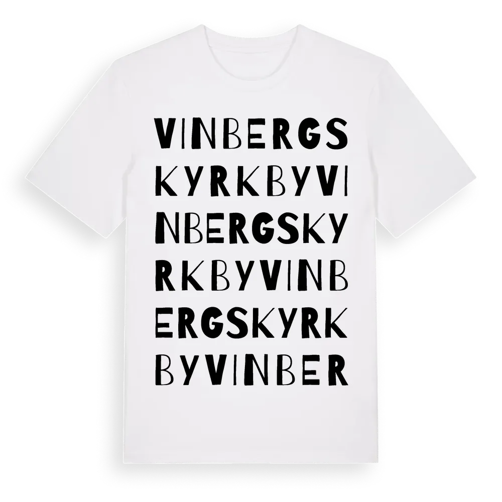 Vinbergs Kyrkby ordlek t-shirt är inspirerad av byn Vinbergs Kyrkby i Hallands län, Sverige. Tröjan är designad för dig som har en speciell koppling till platsen – oavsett om du bor här, har rötterna här eller bara älskar Vinbergs Kyrkby.