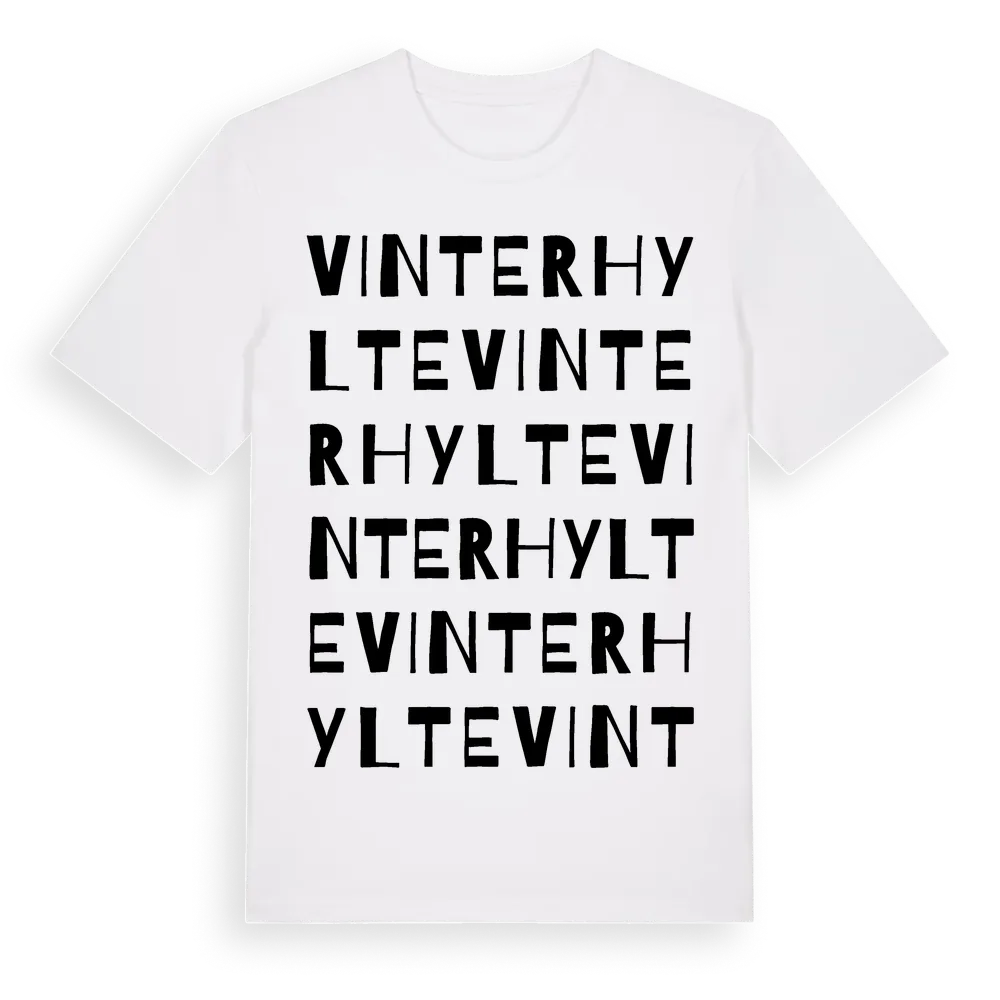 Vinterhylte ordlek t-shirt är inspirerad av Vinterhylte i Hallands län, Sverige. Tröjan är designad för dig som har en speciell koppling till platsen – oavsett om du bor här, har rötterna här eller bara älskar Vinterhylte.