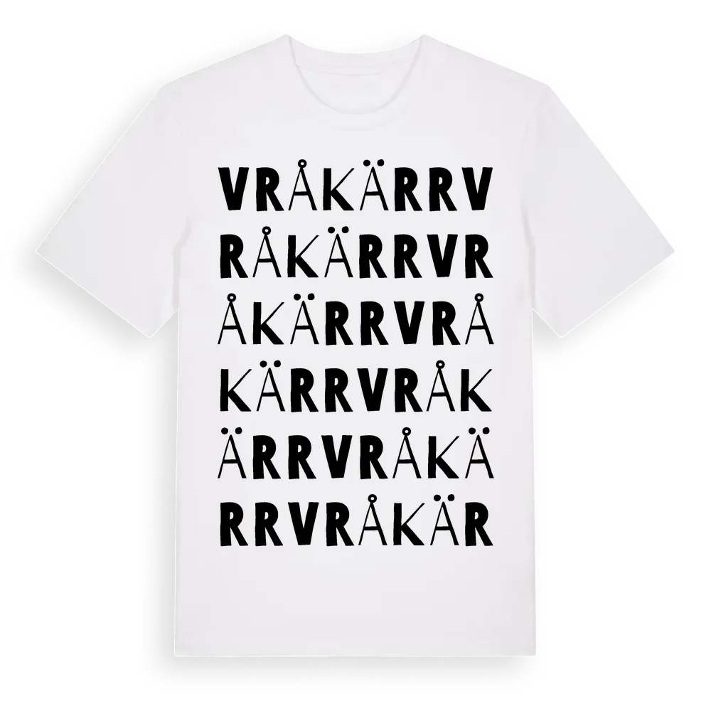 Vråkärr ordlek t-shirt är inspirerad av byn Vråkärr i Hallands län, Sverige. Tröjan är designad för dig som har en speciell koppling till platsen – oavsett om du bor här, har rötterna här eller bara älskar Vråkärr.