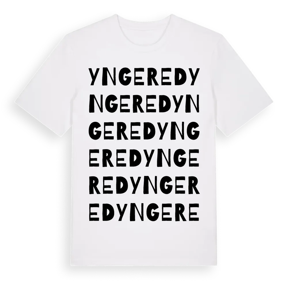 En ordlek byggd på Yngereds namn. Subtilt och klurig – ett motiv som bara de som verkligen känner platsen fullt ut förstår. Premium bomull, unisex – från byn Yngered i Hallands län.
