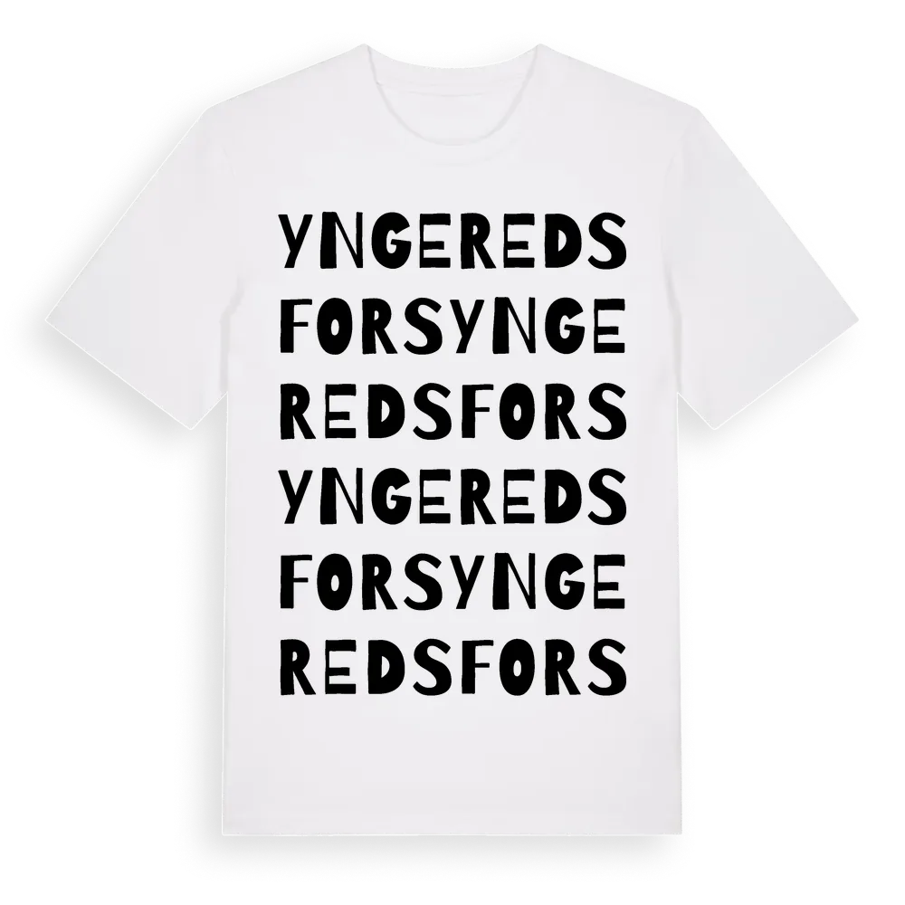 En ordlek byggd på Yngeredsforss namn. Subtilt och klurig – ett motiv som bara de som verkligen känner platsen fullt ut förstår. Premium bomull, unisex – från byn Yngeredsfors i Hallands län.