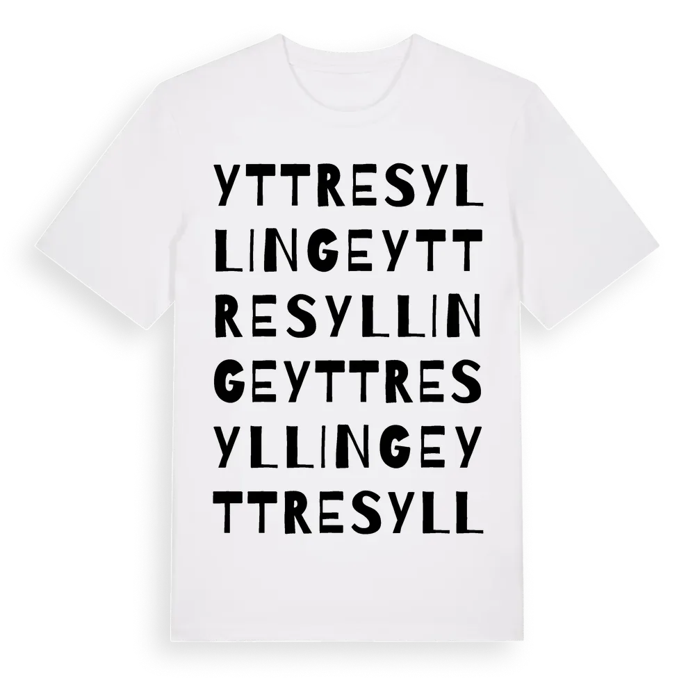 Yttre Syllinge ordlek t-shirt är inspirerad av Yttre Syllinge i Hallands län, Sverige. Tröjan är designad för dig som har en speciell koppling till platsen – oavsett om du bor här, har rötterna här eller bara älskar Yttre Syllinge.