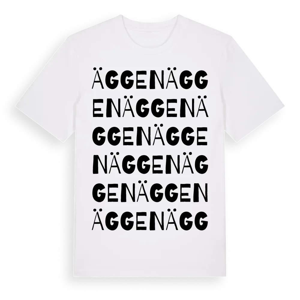En ordlek byggd på Äggens namn. Subtilt och klurig – ett motiv som bara de som verkligen känner platsen fullt ut förstår. Premium bomull, unisex – från byn Äggen i Jämtlands län.