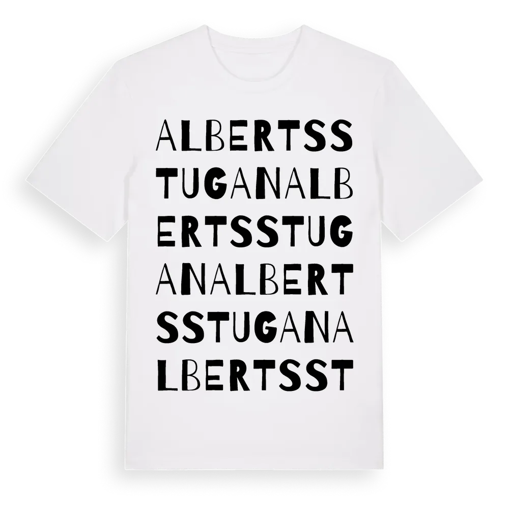 Albertsstugan ordlek t-shirt är inspirerad av Albertsstugan i Jämtlands län, Sverige. Tröjan är designad för dig som har en speciell koppling till platsen – oavsett om du bor här, har rötterna här eller bara älskar Albertsstugan.