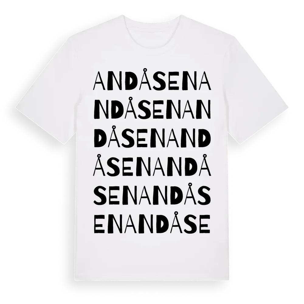 Andåsen ordlek t-shirt är inspirerad av byn Andåsen i Jämtlands län, Sverige. Tröjan är designad för dig som har en speciell koppling till platsen – oavsett om du bor här, har rötterna här eller bara älskar Andåsen.