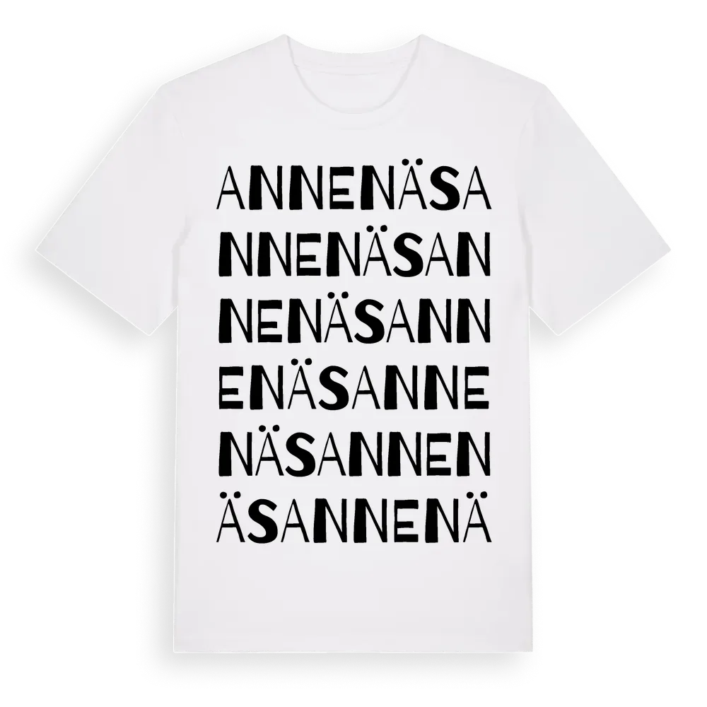 Annenäs ordlek t-shirt är inspirerad av Annenäs i Jämtlands län, Sverige. Tröjan är designad för dig som har en speciell koppling till platsen – oavsett om du bor här, har rötterna här eller bara älskar Annenäs.