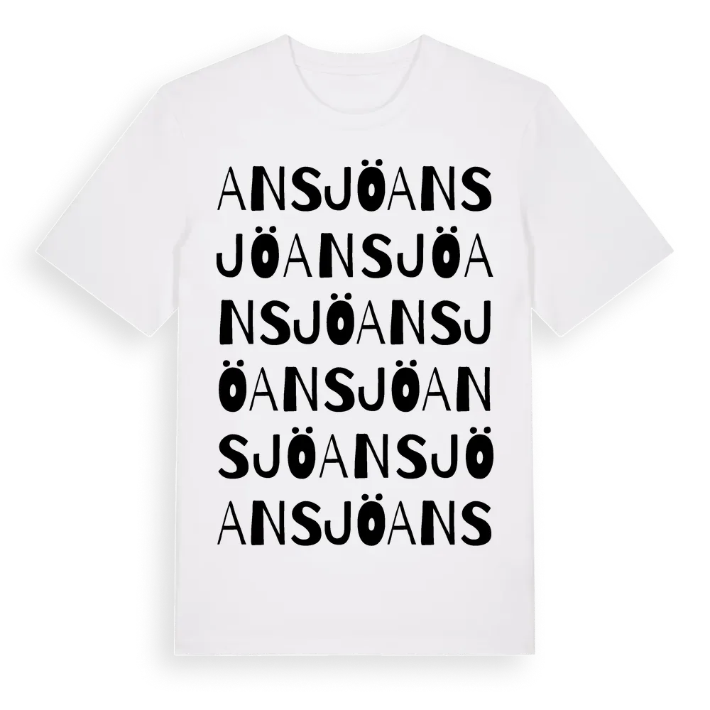 Ansjö ordlek t-shirt är inspirerad av byn Ansjö i Jämtlands län, Sverige. Tröjan är designad för dig som har en speciell koppling till platsen – oavsett om du bor här, har rötterna här eller bara älskar Ansjö.