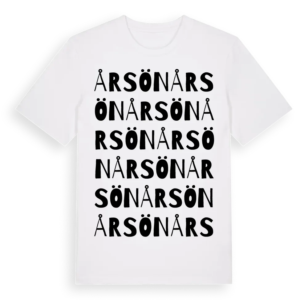Årsön ordlek t-shirt är inspirerad av ön Årsön i Jämtlands län, Sverige. Tröjan är designad för dig som har en speciell koppling till platsen – oavsett om du bor här, har rötterna här eller bara älskar Årsön.