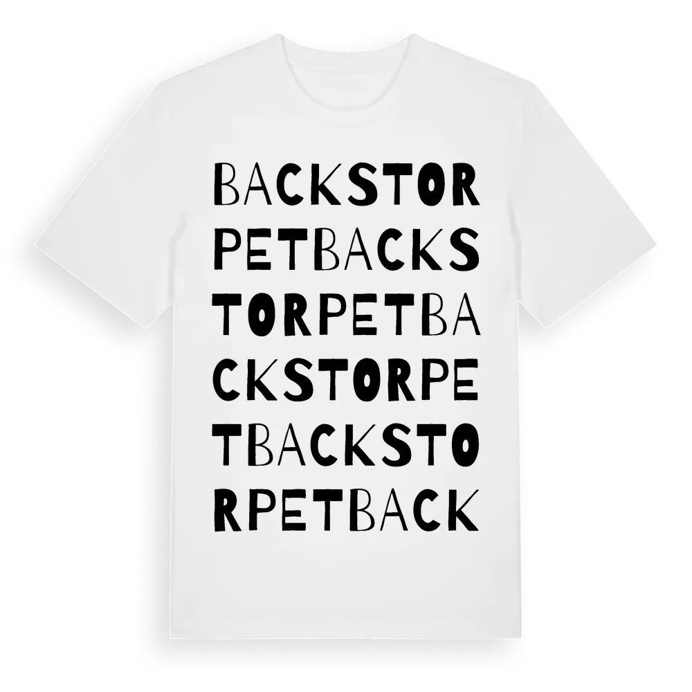 Backstorpet ordlek t-shirt är inspirerad av Backstorpet i Jämtlands län, Sverige. Tröjan är designad för dig som har en speciell koppling till platsen – oavsett om du bor här, har rötterna här eller bara älskar Backstorpet.