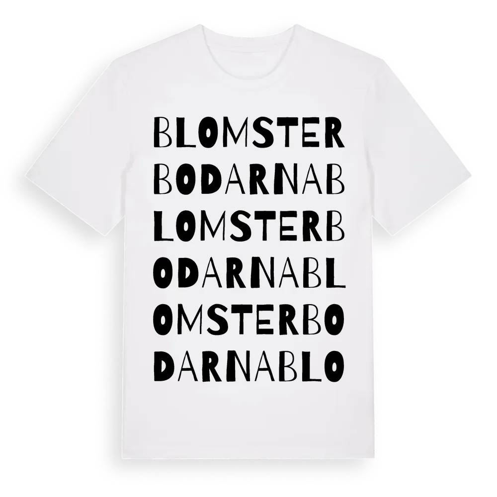Blomsterbodarna ordlek t-shirt är inspirerad av Blomsterbodarna i Jämtlands län, Sverige. Tröjan är designad för dig som har en speciell koppling till platsen – oavsett om du bor här, har rötterna här eller bara älskar Blomsterbodarna.