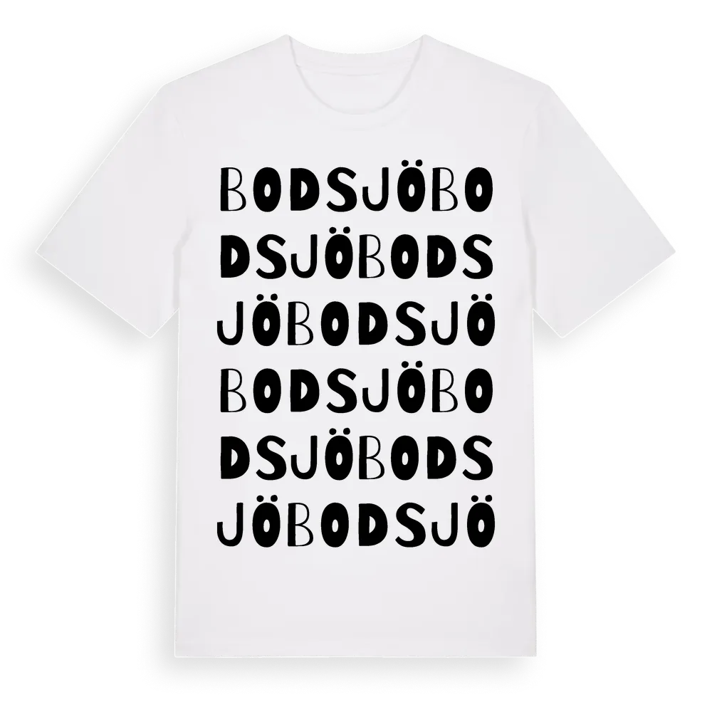 Bodsjö ordlek t-shirt är inspirerad av byn Bodsjö i Jämtlands län, Sverige. Tröjan är designad för dig som har en speciell koppling till platsen – oavsett om du bor här, har rötterna här eller bara älskar Bodsjö.