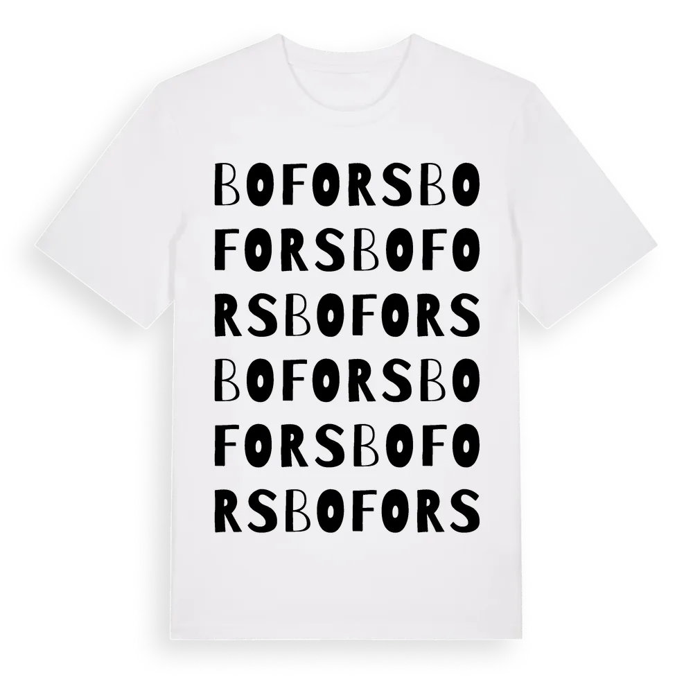 Bofors ordlek t-shirt är inspirerad av byn Bofors i Jämtlands län, Sverige. Tröjan är designad för dig som har en speciell koppling till platsen – oavsett om du bor här, har rötterna här eller bara älskar Bofors.