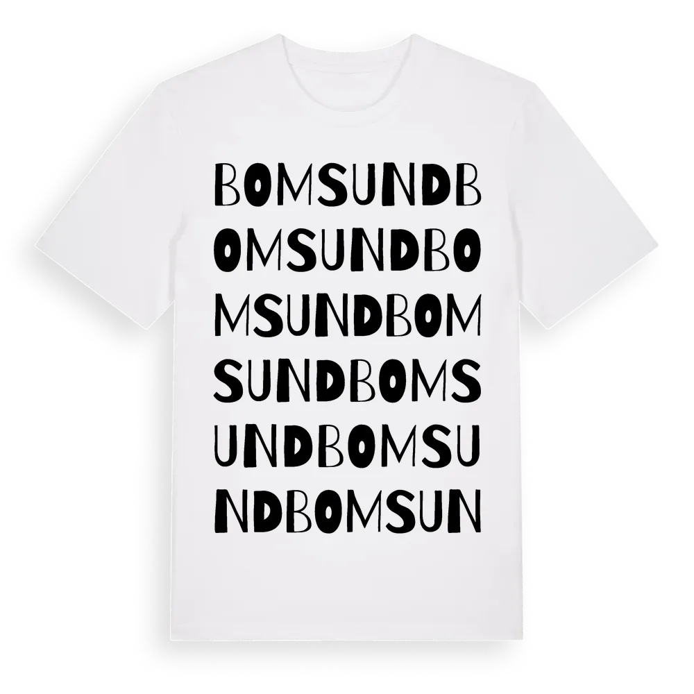 Bomsund ordlek t-shirt är inspirerad av byn Bomsund i Jämtlands län, Sverige. Tröjan är designad för dig som har en speciell koppling till platsen – oavsett om du bor här, har rötterna här eller bara älskar Bomsund.