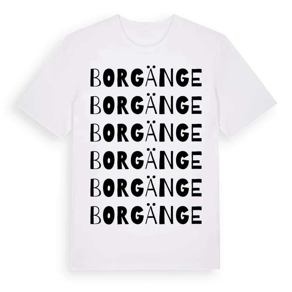 En ordlek byggd på Borgänges namn. Subtilt och klurig – ett motiv som bara de som verkligen känner platsen fullt ut förstår. Premium bomull, unisex – från Borgänge i Jämtlands län.