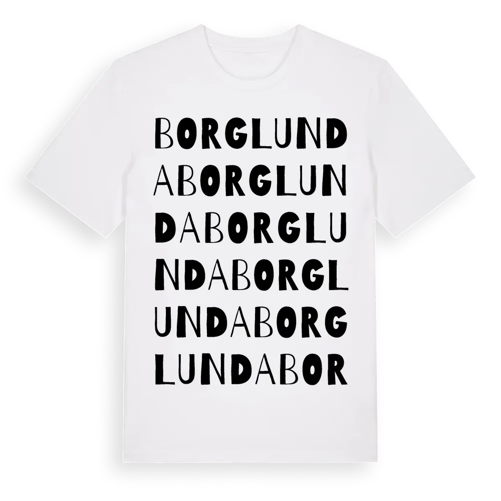 Borglunda ordlek t-shirt är inspirerad av byn Borglunda i Jämtlands län, Sverige. Tröjan är designad för dig som har en speciell koppling till platsen – oavsett om du bor här, har rötterna här eller bara älskar Borglunda.