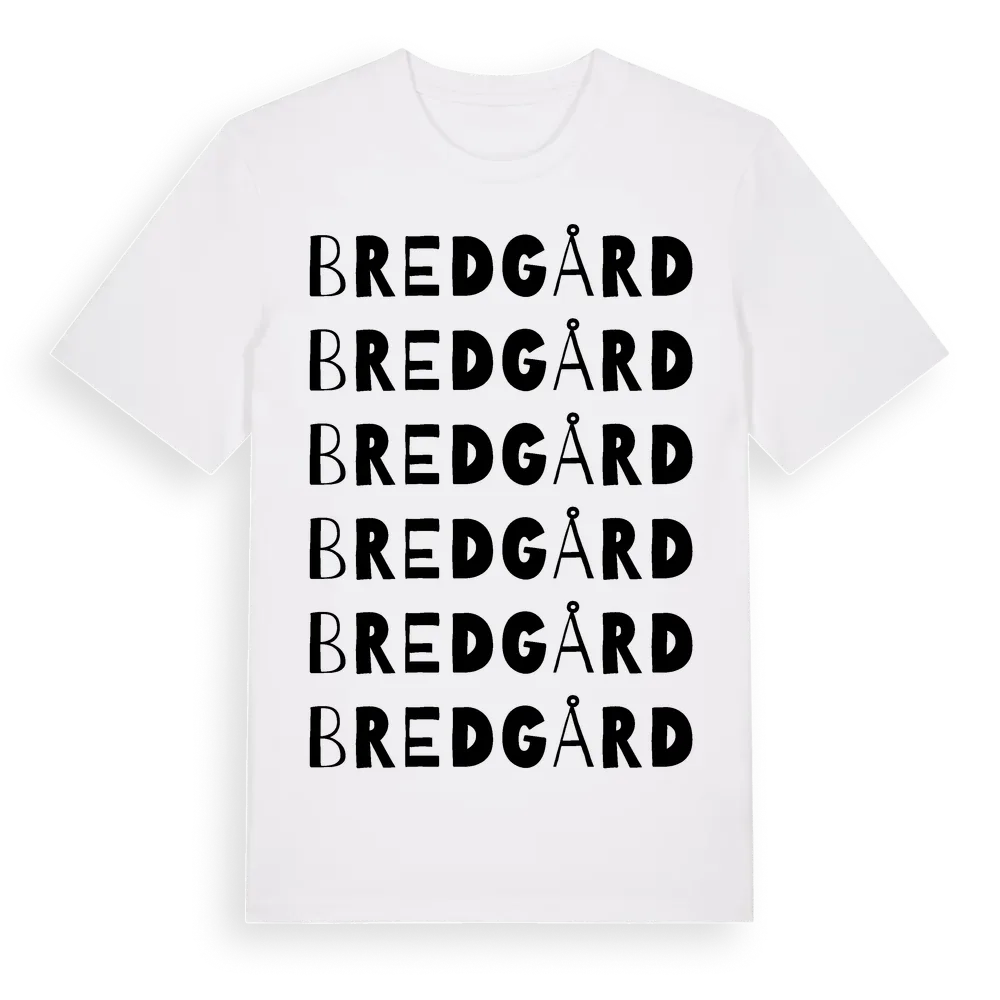 Bredgård ordlek t-shirt är inspirerad av byn Bredgård i Jämtlands län, Sverige. Tröjan är designad för dig som har en speciell koppling till platsen – oavsett om du bor här, har rötterna här eller bara älskar Bredgård.