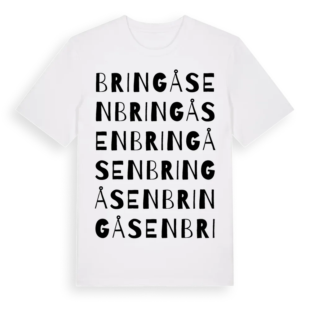 Bringåsen ordlek t-shirt är inspirerad av Bringåsen i Jämtlands län, Sverige. Tröjan är designad för dig som har en speciell koppling till platsen – oavsett om du bor här, har rötterna här eller bara älskar Bringåsen.