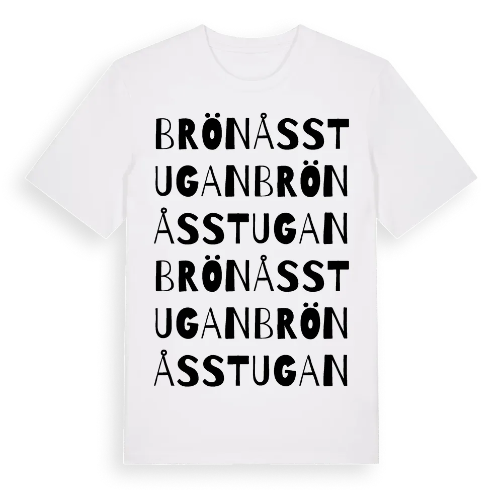 Brönåsstugan ordlek t-shirt är inspirerad av Brönåsstugan i Jämtlands län, Sverige. Tröjan är designad för dig som har en speciell koppling till platsen – oavsett om du bor här, har rötterna här eller bara älskar Brönåsstugan.