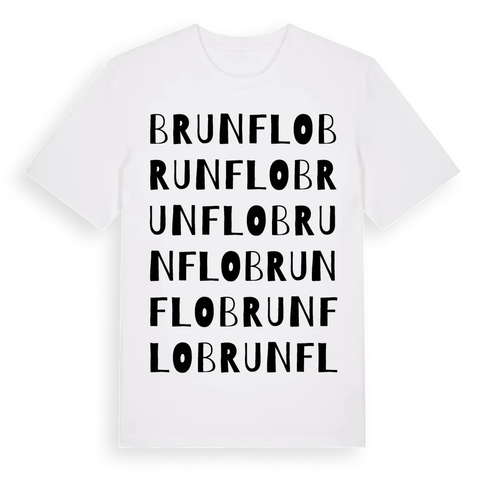 Brunflo ordlek t-shirt är inspirerad av byn Brunflo i Jämtlands län, Sverige. Tröjan är designad för dig som har en speciell koppling till platsen – oavsett om du bor här, har rötterna här eller bara älskar Brunflo.