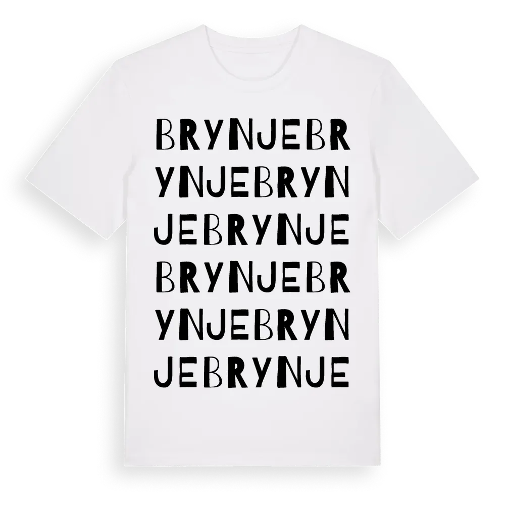 Brynje ordlek t-shirt är inspirerad av byn Brynje i Jämtlands län, Sverige. Tröjan är designad för dig som har en speciell koppling till platsen – oavsett om du bor här, har rötterna här eller bara älskar Brynje.