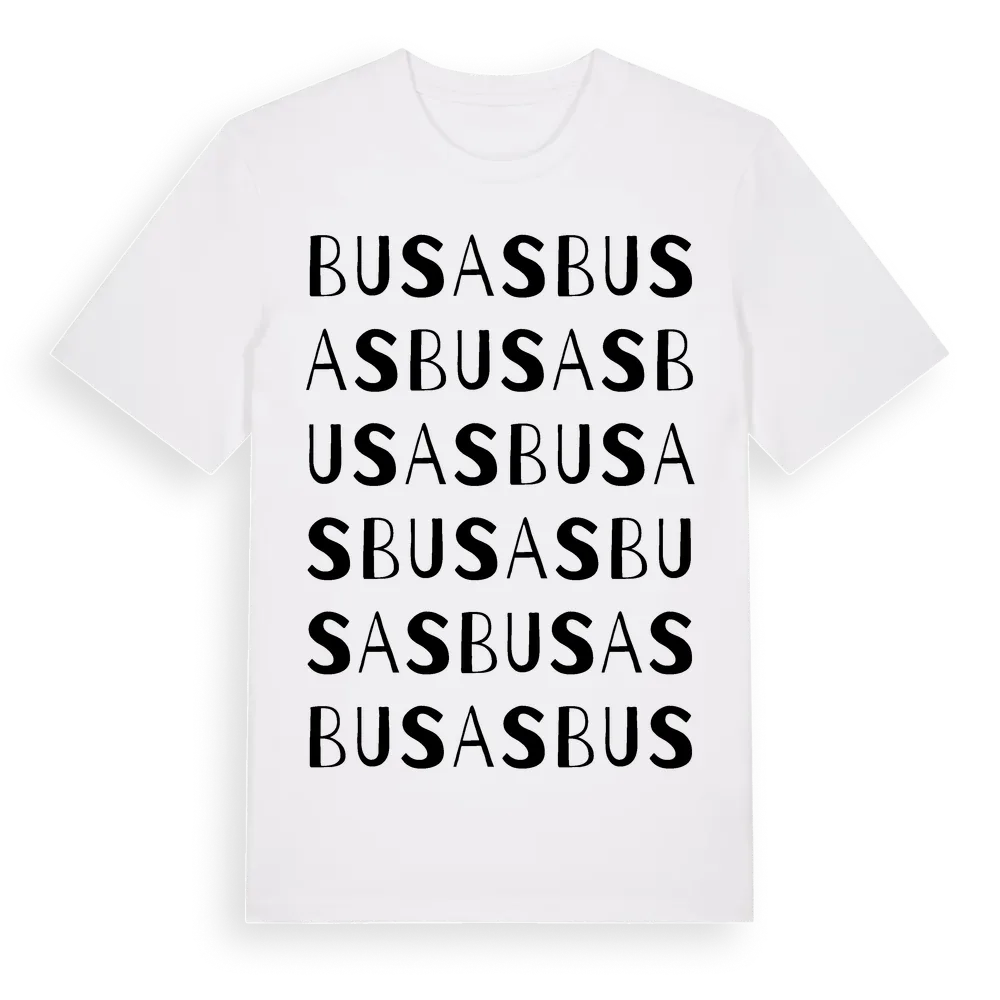 Busas ordlek t-shirt är inspirerad av Busas i Jämtlands län, Sverige. Tröjan är designad för dig som har en speciell koppling till platsen – oavsett om du bor här, har rötterna här eller bara älskar Busas.