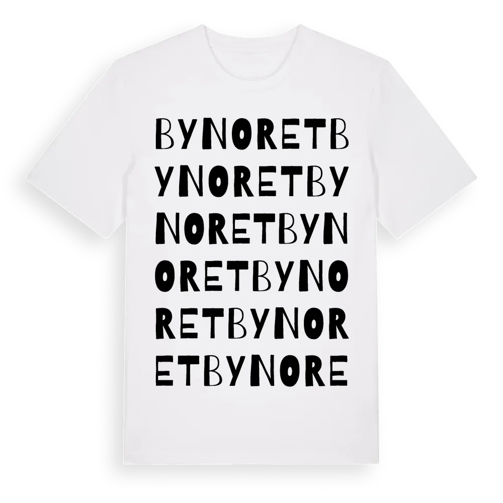 Bynoret ordlek t-shirt är inspirerad av Bynoret i Jämtlands län, Sverige. Tröjan är designad för dig som har en speciell koppling till platsen – oavsett om du bor här, har rötterna här eller bara älskar Bynoret.