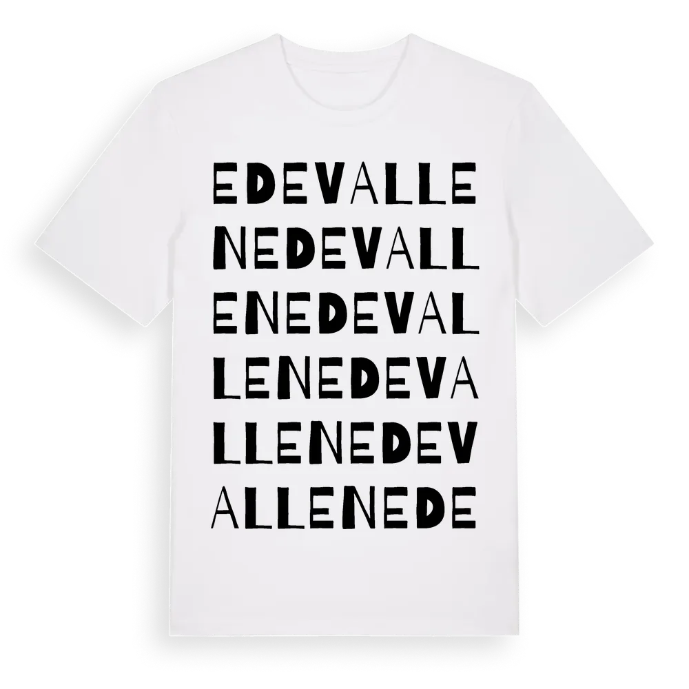 Edevallen ordlek t-shirt är inspirerad av Edevallen i Jämtlands län, Sverige. Tröjan är designad för dig som har en speciell koppling till platsen – oavsett om du bor här, har rötterna här eller bara älskar Edevallen.