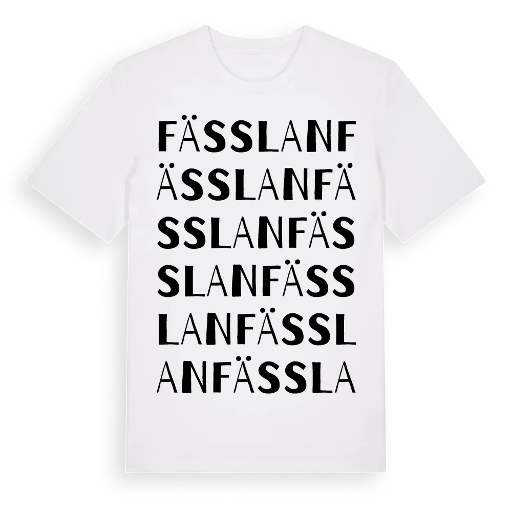 Fässlan ordlek t-shirt är inspirerad av Fässlan i Jämtlands län, Sverige. Tröjan är designad för dig som har en speciell koppling till platsen – oavsett om du bor här, har rötterna här eller bara älskar Fässlan.