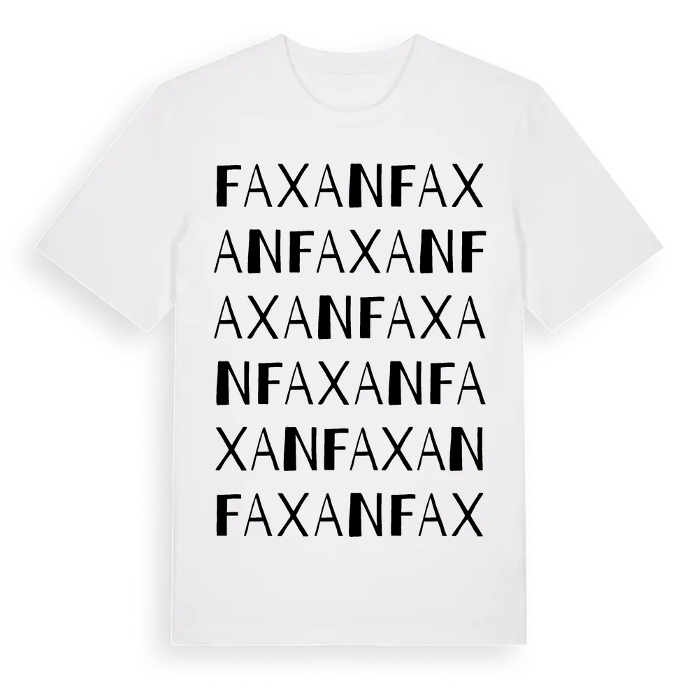 Faxan ordlek t-shirt är inspirerad av byn Faxan i Jämtlands län, Sverige. Tröjan är designad för dig som har en speciell koppling till platsen – oavsett om du bor här, har rötterna här eller bara älskar Faxan.