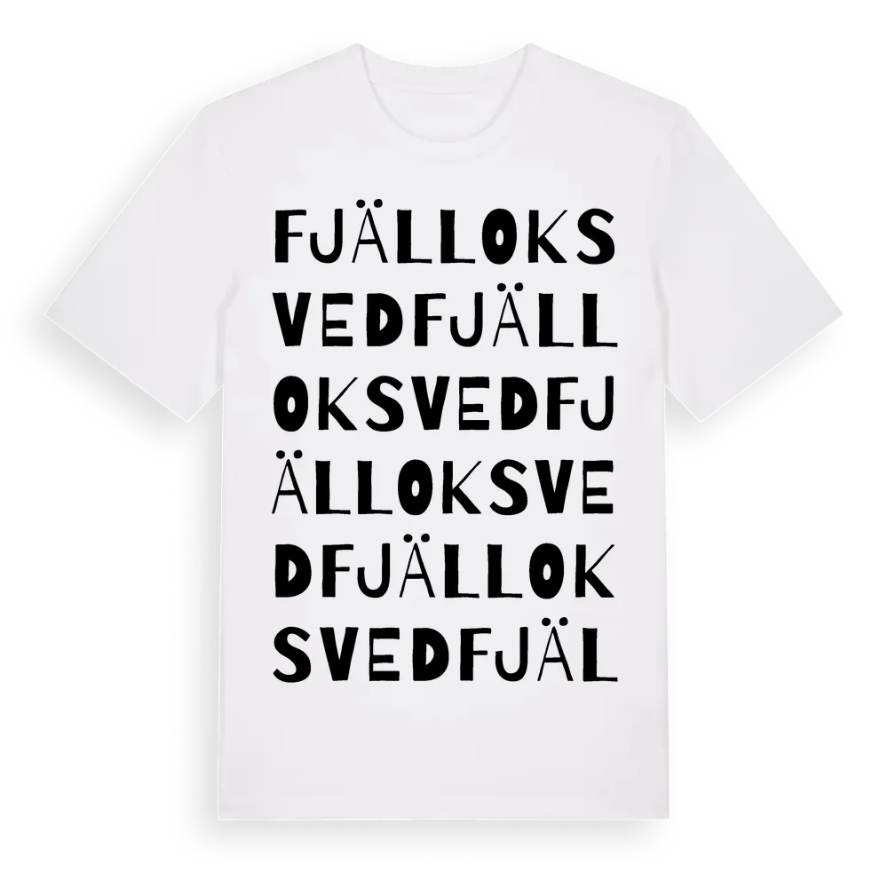 Fjälloksved ordlek t-shirt är inspirerad av Fjälloksved i Jämtlands län, Sverige. Tröjan är designad för dig som har en speciell koppling till platsen – oavsett om du bor här, har rötterna här eller bara älskar Fjälloksved.