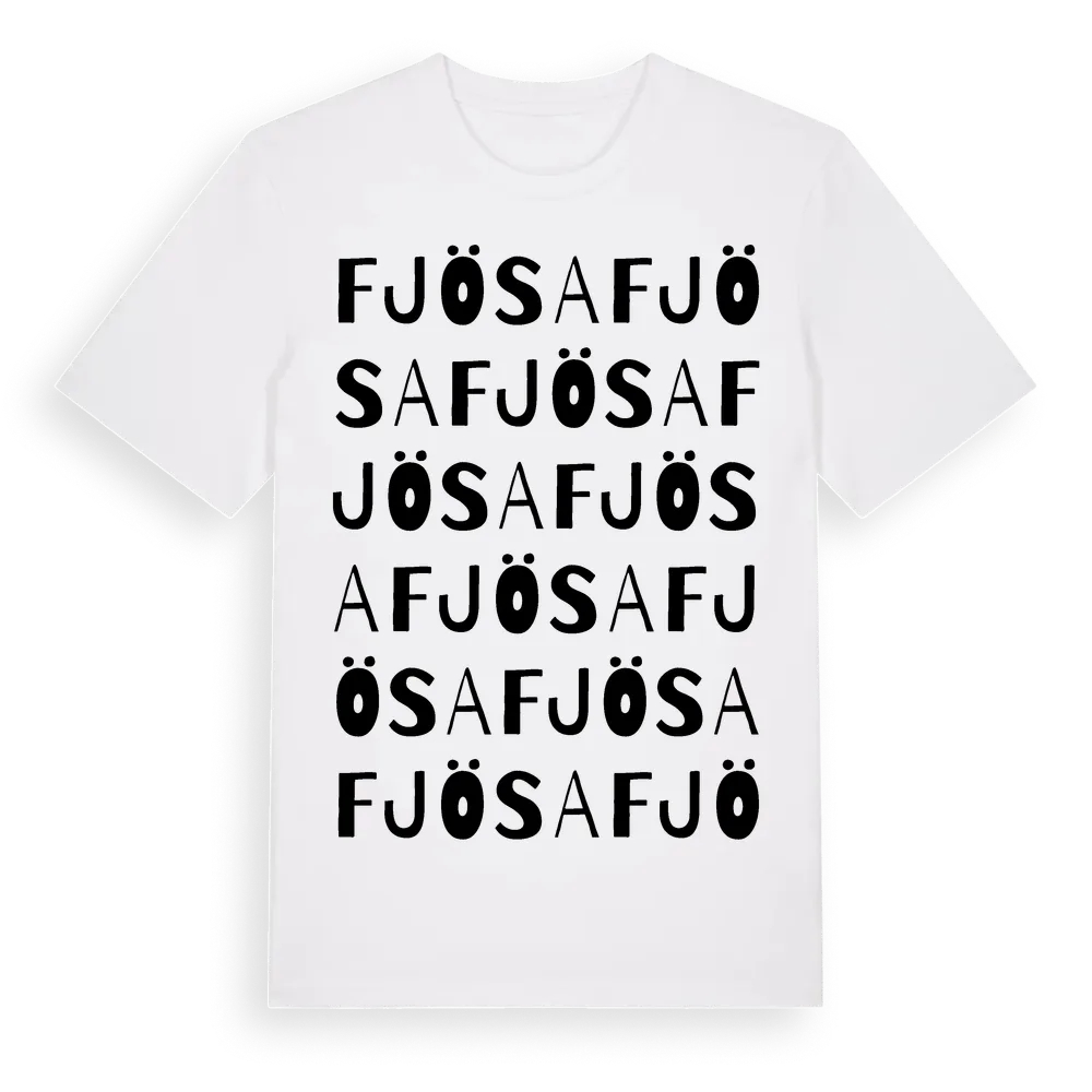 Fjösa ordlek t-shirt är inspirerad av Fjösa i Jämtlands län, Sverige. Tröjan är designad för dig som har en speciell koppling till platsen – oavsett om du bor här, har rötterna här eller bara älskar Fjösa.