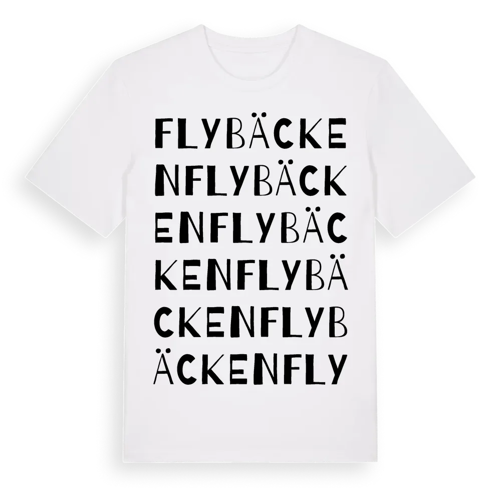 Flybäcken ordlek t-shirt är inspirerad av Flybäcken i Jämtlands län, Sverige. Tröjan är designad för dig som har en speciell koppling till platsen – oavsett om du bor här, har rötterna här eller bara älskar Flybäcken.