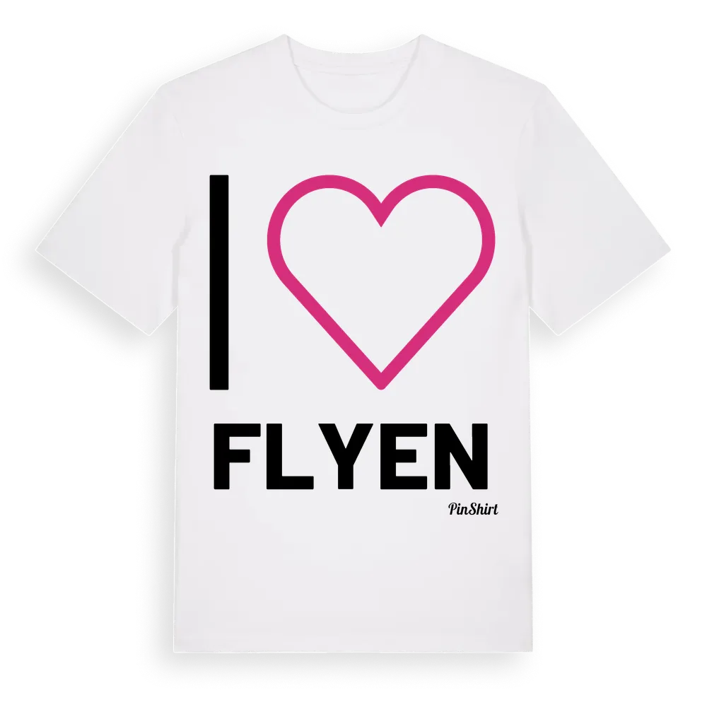 Det klassiska "I ❤ Flyen"-motivet i stort format som täcker hela bröstet. För dig som vill visa kärleken till Flyen på riktigt. Premium bomull, unisex – från Flyen i Jämtlands län.